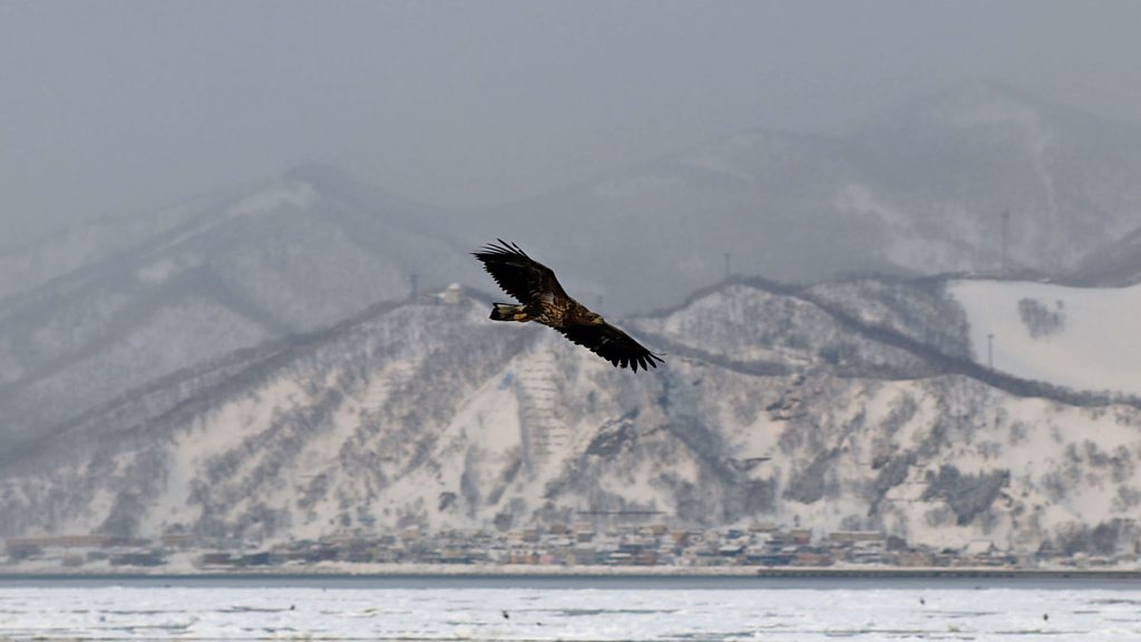 Immerse yourself in the sounds of the ice-laden Hokkaido river from the cosy warmth of your armchair. You can hear the ice moving and lapping upon the shore, and the creaks and squeaks as it rubs together. And in the distance, the mournful calls of the goldeneye and jungle crow. This audio was recorded in Japan for the BBC by Patrick Morris.