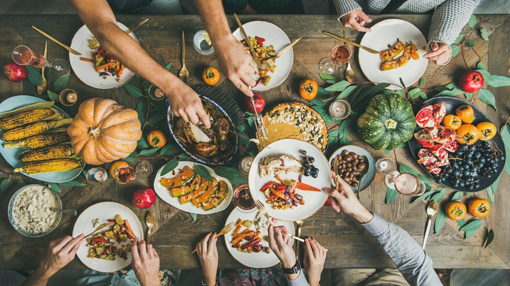 Poet and novelist Ben Okri reads 'The Mysterious Anxiety of Them and Us', his short story about privilege, want and waste, told through the metaphor of food and feasting. He was speaking to Emily Thomas and an audience at the FT Weekend Oxford Literary Festival. (Picture: People feasting at a table full of food. Credit: Getty Images)