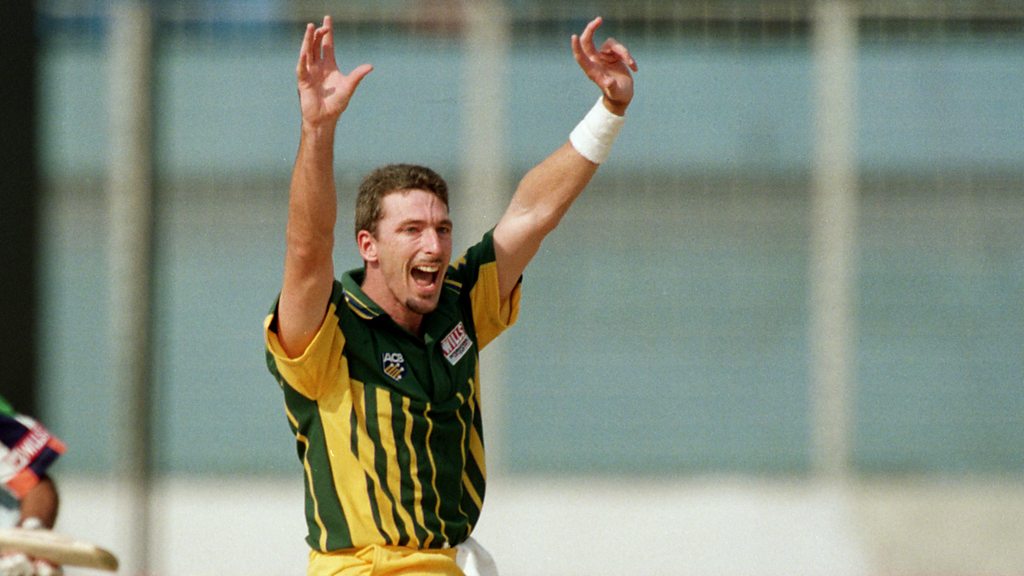 Damien Fleming recalls his pivotal role in the extraordinary run out that sent Australia through to the 1999 World Cup final at South Africa's expense. Photo: Damien Fleming celebrating a wicket (Getty Images)