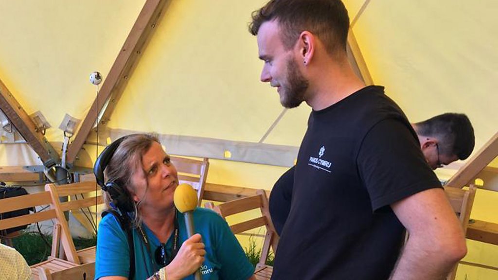 Gerwyn, sydd newydd briodi ac yn treulio mis mêl ar faes yr Eisteddfod.