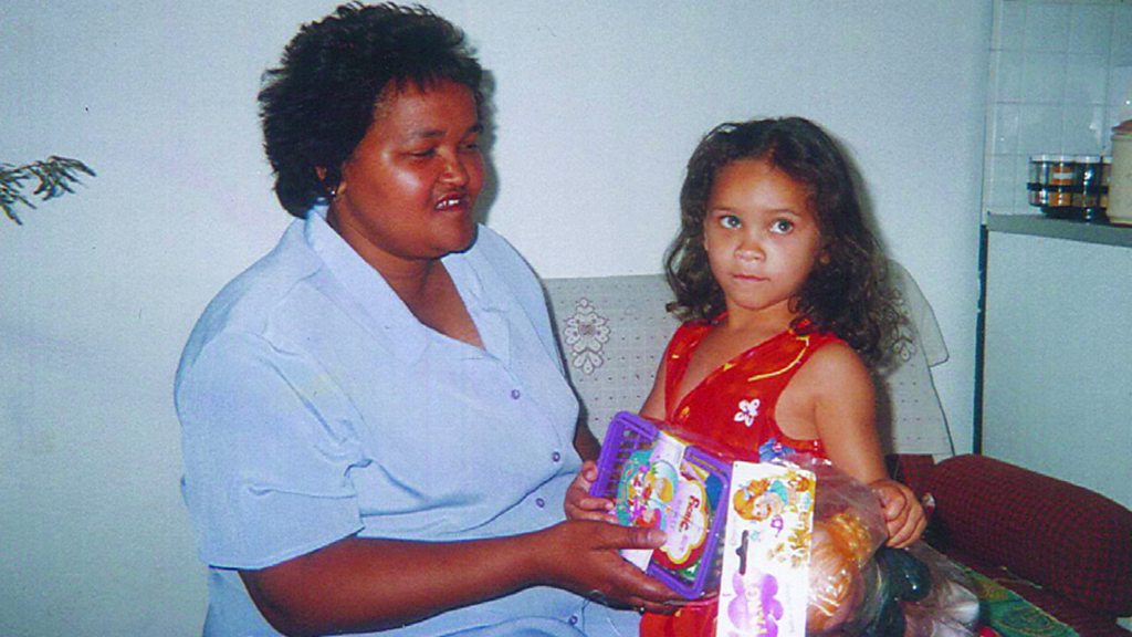 In April 1997 a woman dressed as a nurse walked into a Cape Town hospital and left with a new born baby. The baby's name was Zephany Nurse but she was raised by the woman who kidnapped her as Miche Solomon. It would be 17 years before she discovered her true identity and was forced to make some impossible decisions. Miche recently released a book based on her remarkable life story called: Zephany, Two Mothers One Daughter. Presenter: Mpho Lakaje Producer: Thomas Harding Assinder Picture: Lavona Solomon and Miche on Christmas Day when she was five-years-old. Credit: Miche Solomon