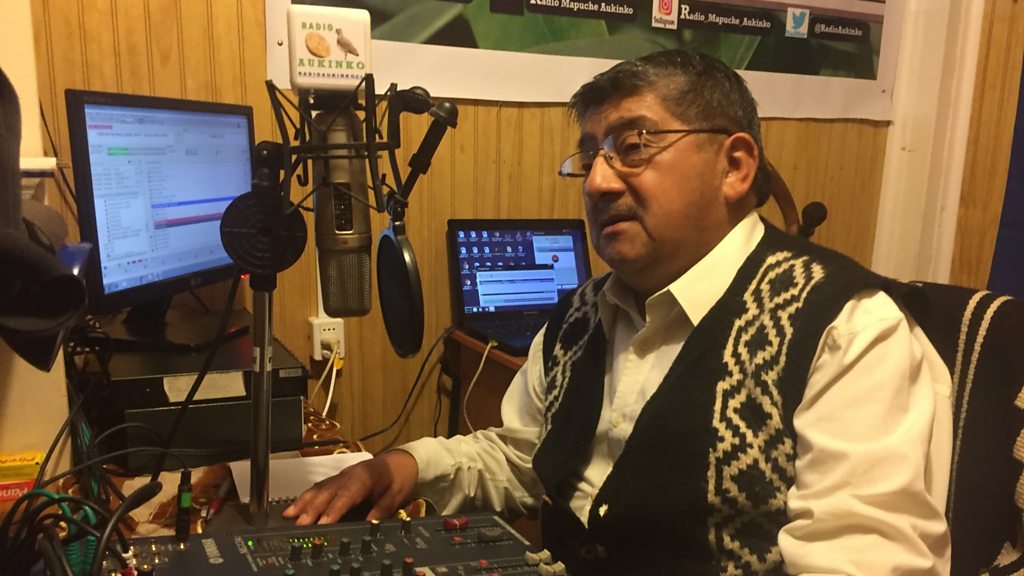 Luis Huincache Panchillo is an indigenous chief turned radio DJ and host. He runs Radio Aukinko, Chile's first online radio station to broadcast news and music in the Mapuche language. Outlook’s Grace Livingstone went to meet him. Picture: Luis Huincache Credit: Grace Livingstone