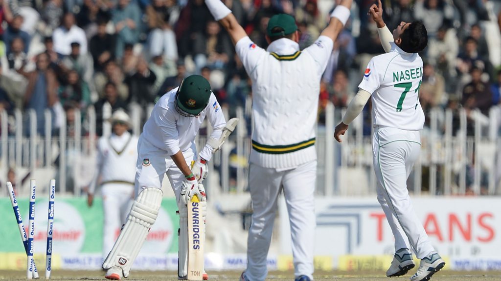 Taimur Khan first spotted Naseem Shah at a regional talent trial a few years ago and he tells Stumped, that he knew he would go on to play for Pakistan on the international stage. Shah became the youngest player to take a hat-trick in Test cricket for Pakistan. Speaking with BBC Stumped presenter, Alison Mitchell, Khan explained what made Shah an International prospect at such an early age: “You know when he was with me in the national camp for the under 16’s, he was down to earth, quick learner and he was listening to all the senior players, always asking them for tips. He was very good in training, always on time and diet conscious at that age. That made him an exceptional case”. (Photo: Pakistan bowler Naseem Shah celebrates after taking the wicket of Bangladesh"s Saif Hassan. Credit: AFP)