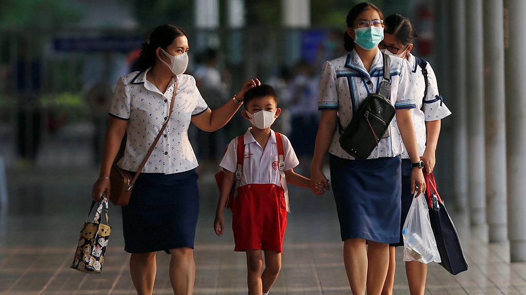 Some parents have concerns about the way children are responding to the virus outbreak as Celia Hatton, Asia Pacific editor, explains Photo: A student and school staff leave school Credit: Reuters