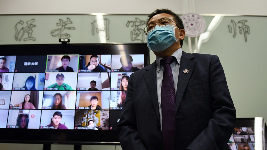 Ensuring people kept their distance from each other reduced the number of new infections. Nicholas Christakis, a professor in the Human Nature Lab at Yale University, explains how changing people's behaviour gave the virus "nowhere else to go". Photo: A professor gives a lecture online at at Tsinghua University, China Credit: Getty Images