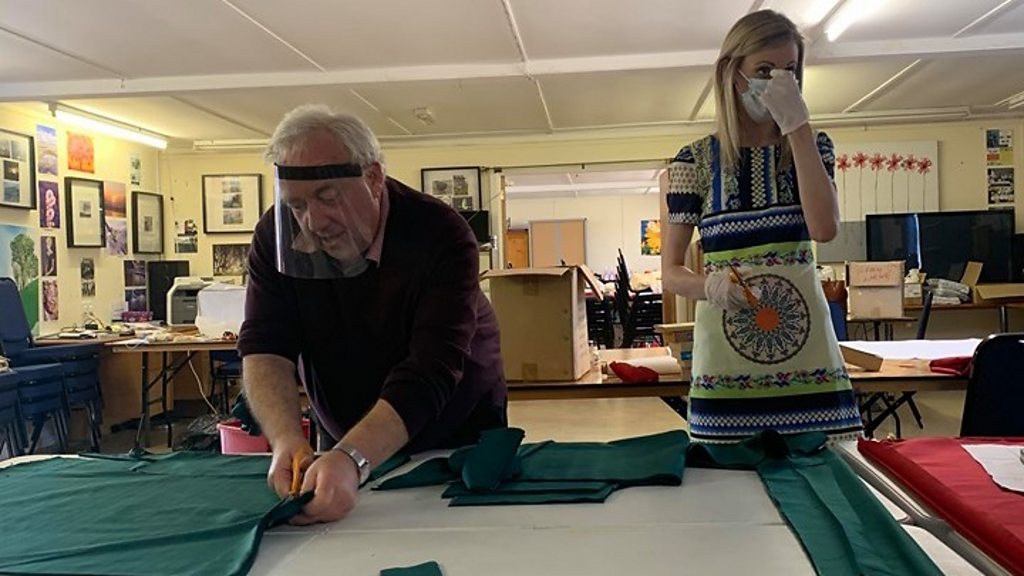 Sewing scrubs and masks for the front line workers.