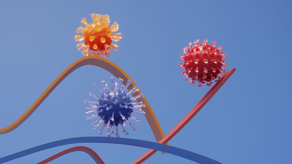 The impact of the Omicron variant is still not known as we wait to find out how its mutations could affect transmissability, the effectiveness of existing vaccines and how ill it might make us. It has not been established exactly where the variant emerged, but there are theories that variants can arise in people who have compromised immune systems. Sharon Peacock, a microbiologist who is Professor of Public Health and Microbiology in the Department of Medicine at the University of Cambridge and Jonathan Ball, Professor of Virology at the University of Nottingham in the UK, say that this is because people with compromised immune systems can't shake off the virus as the body doesn't have the strength to fully recover. Consequently, the virus carries on living in the body, changing over time. However, they say that it's unlikely we will discover the origin of this variant and where it developed. Photo: Graphic showing three viruses Credit: Getty Images