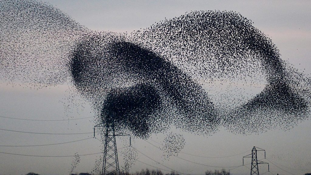 Starling murmurations are a dramatic sight when hundreds of the birds swoop and dive in unison without flying into each other. There are a number of reasons why they do it - including protection from predators, to keep warm and to signal where good feeding areas are. BBC science correspondent Helen Briggs says researchers in Italy are trying to find out how it happens. Lead researcher Dr Antonio Culla of Università Sapienza in Rome says, "It's mutual imitation and speed control - each bird is able to control its speed in a way that large fluctuations are permitted." Photo: Murmuration of starlings above the Scottish borders in the UK Credit: PA Wire