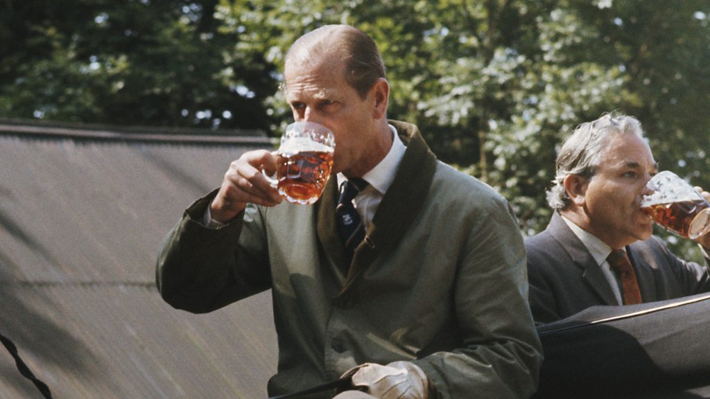 A warrant issued by Queen Elizabeth II's royal household to a producer allows it to display the royal coat of arms, or design, and shows that its goods or services are supplied to the Queen or to a member of the Royal Family. The Windsor and Eton brewery, close to the royal residence at Windsor, is brewing a beer in celebration of the Platinum Jubilee. Will Calvert, one of the people who set up the brewery up in 2009, explains the events that led to his company being awarded a royal warrant. He says that when Prince Philip was alive, he took an interest in the local beers, being known to prefer beer to wine at state occasions, and the moment that Windsor and Eton beer was stocked in the Queen's shop was a big moment for his brewery. Photo: Prince Philip, the Duke of Edinburgh, refreshes himself with a beer during a carriage driving event, circa 1980 (Credit: Getty Images)