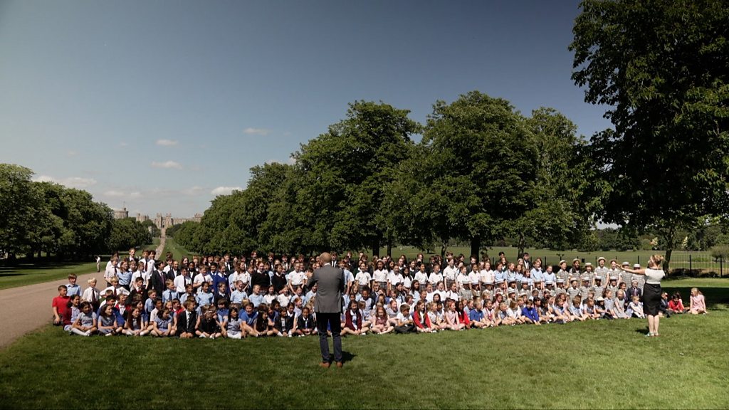300 pupils from Windsor perform a song on the Long Walk to commemorate the Jubilee