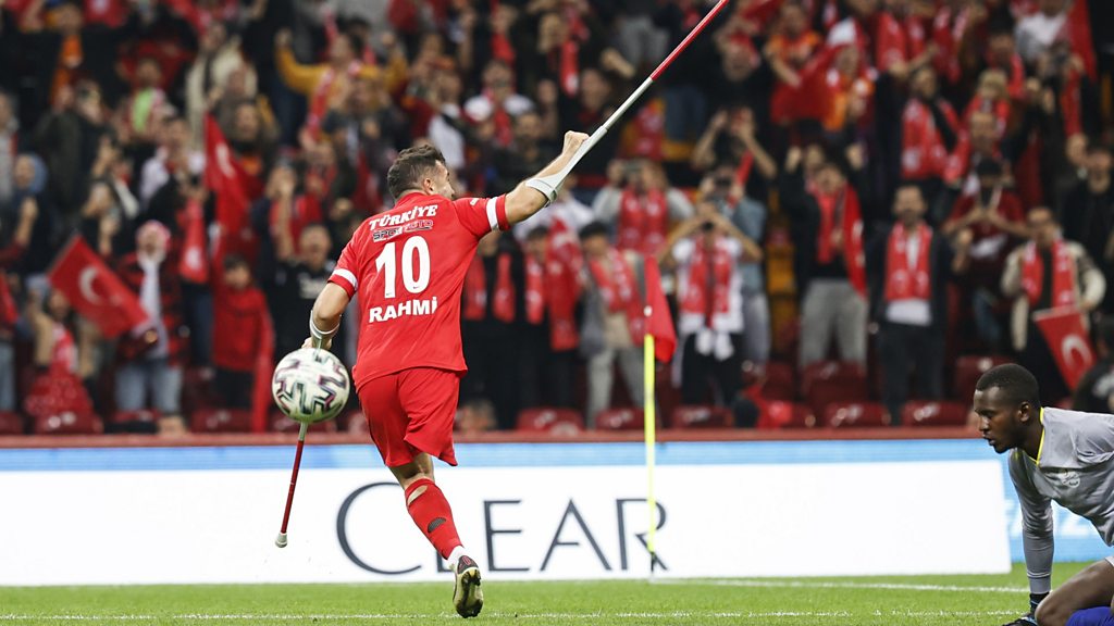 Fatih Erdol is the general manager of the Turkish amputee football team who won the World Cup on Sunday with a 4-1 defeat of Angola in the stadium of one of Turkey's biggest clubs, Galatasaray. Amputee football is a seven a side game, outfield players may have two hands though only one foot, while goalkeepers may have two legs but only one arm. 25,000 fans were in the stadium including Turkey's President Erdogan. A memorable occasion for the players and Fatih Erdol. Image: Rahmi Ozcan of Turkiye celebrates with team mates after a goal during the Amputee Football World Cup final between Turkiye and Angolla at Nef Stadium in Istanbul, Turkiye on October 9, 2022. (Photo by Elif Ozturk Ozgoncu/Anadolu Agency via Getty Images)