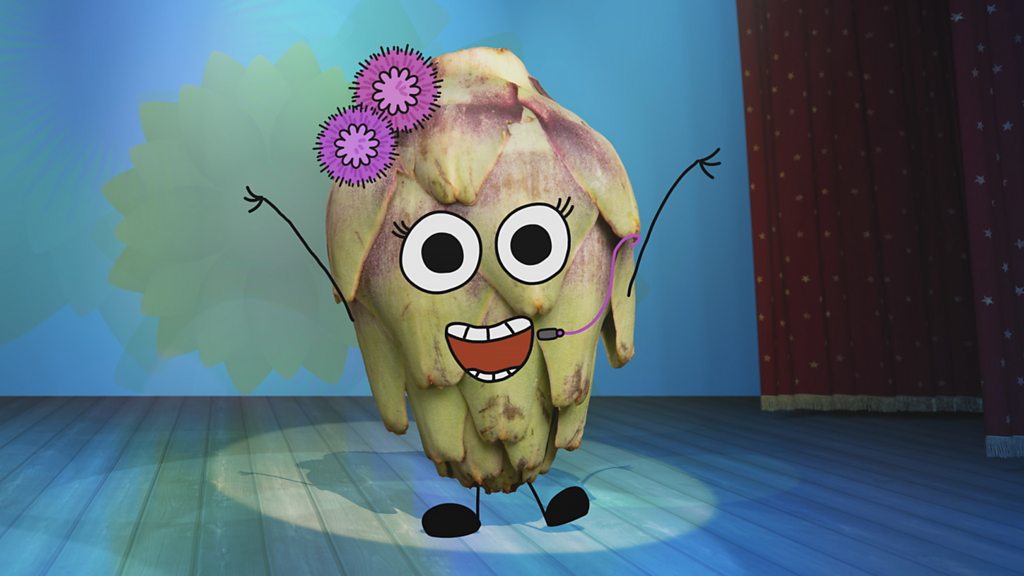 Live from the Roots and Fruits theatre, it’s the rhyming queen Artichoke performing her lovely song I’m a Little Artichoke with a little help from Chicory.