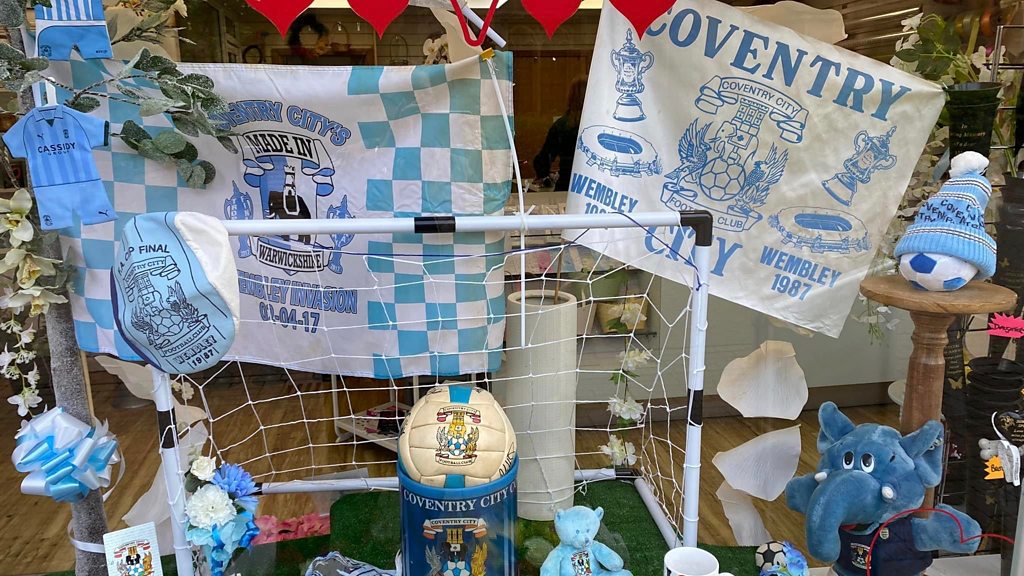 As soon as CCFC got to the play-offs Donna sent her football loving sister, up into the loft to gather her 1987 FA Cup memorabilia from when Coventry City FC played in the final. The sisters are from a family of life-long Sky Blue supporters known as "Olivers Army" and are rooting for their team to make it in to the Premier League. Donna spoke to BBC CWR's Rachel New about the blue and white display.