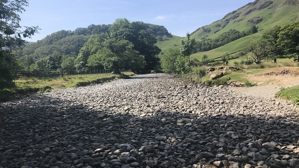The River Derwent in the Borrowdale Valley has almost completely dried up.