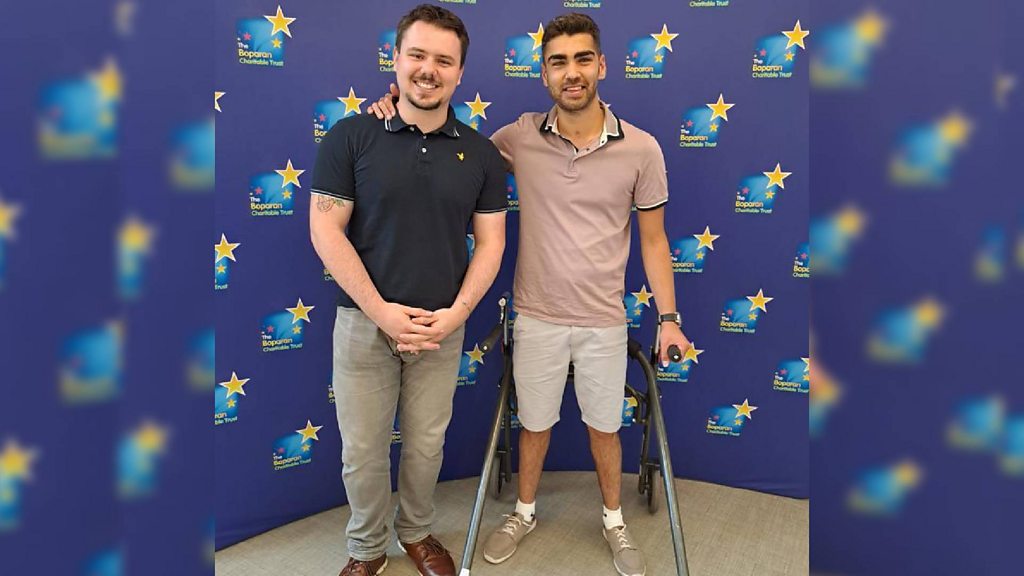 Rafi Solaiman took up the sport of frame running after suffering a stroke at 12 that left him needing to learn to walk and speak again. (Pictured with coach Jamie Ferrario-Green)