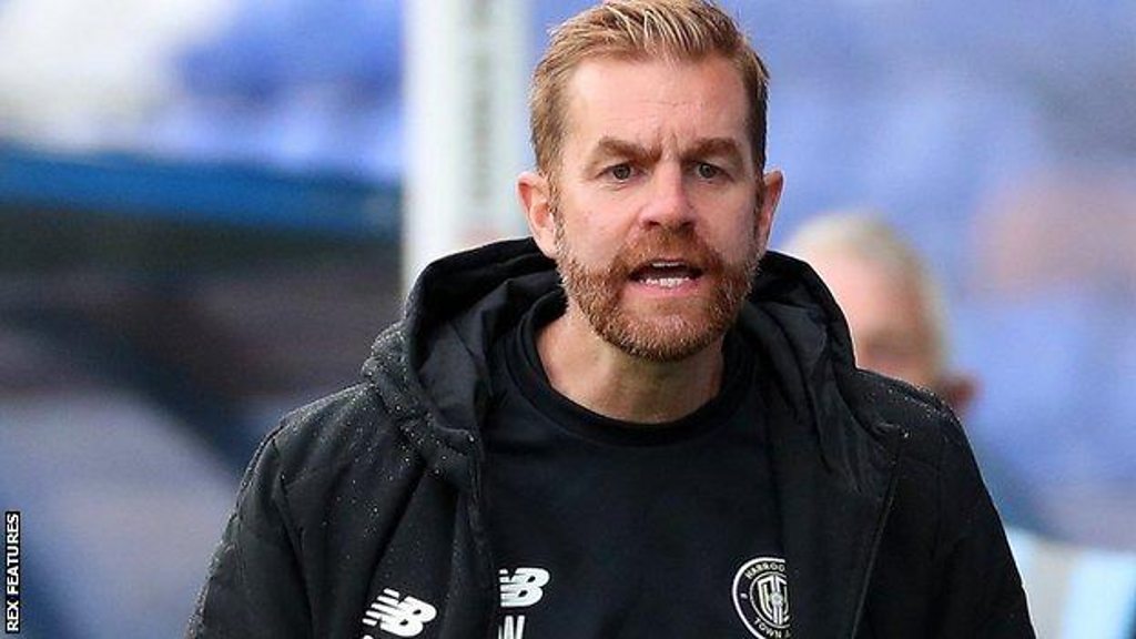Harrogate Town manager Simon Weaver reacts to a defeat at home to MK Dons.