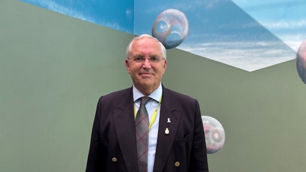 Gloucestershire's PCC Chris Nelson on a new mural outside the custody suites.