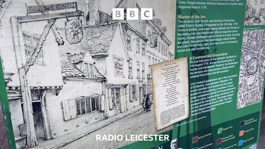 In the area where Leicester Market has been temporarily rehomed, there once stood The Green Dragon Inn. The murder of the landlord, John Fenton, by pistol, became infamous because it led to a mysterious royal pardon for the murderer - a Frenchman called Francis Soules. BBC Leicester’s Ben Jackson takes up the story with Leicester historian Jo Mungovin IMAGE: Green Dragon Square panel. Courtesy of Lecester City council Reporter: Ben Jackson Producer: Andrew Fewster If you want to know as soon as a new episode is available, make sure you subscribe to Secret Leicestershire on BBC Sounds and have push notifications turned on.