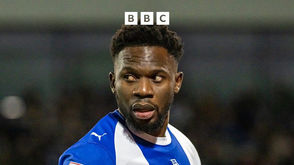 Mike Fondop reacts to Oldham's 3-1 win against Tranmere. (Credit: GettyImages)