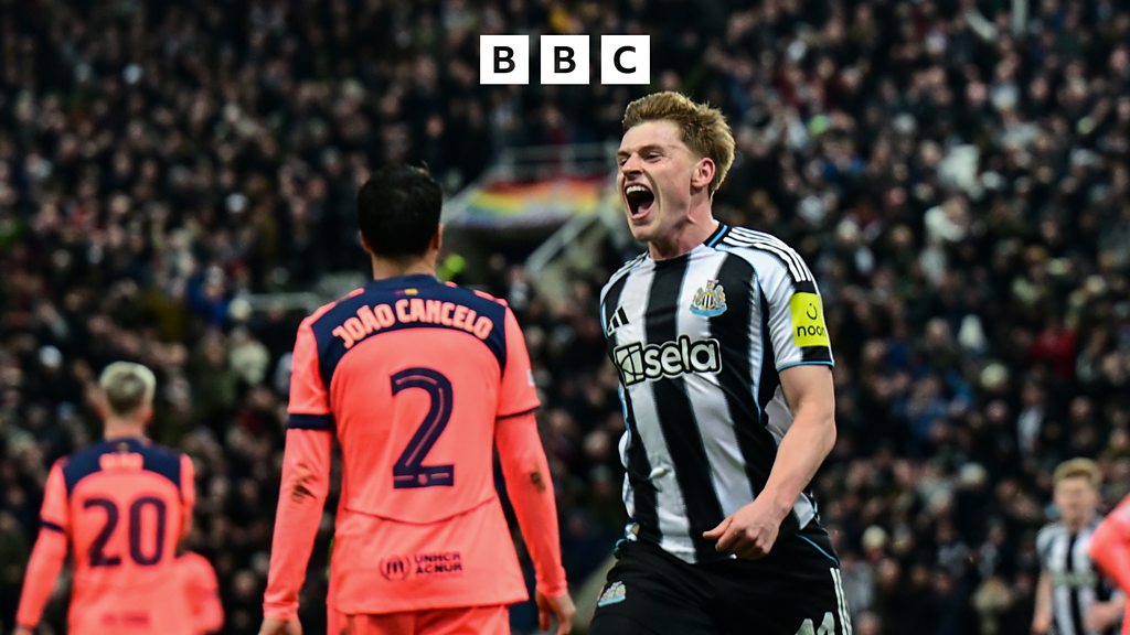 Goalscorer Harvey Barnes reacts to Newcastle 1-1 Barcelona in the Champions League. Photo Credit: Getty Images