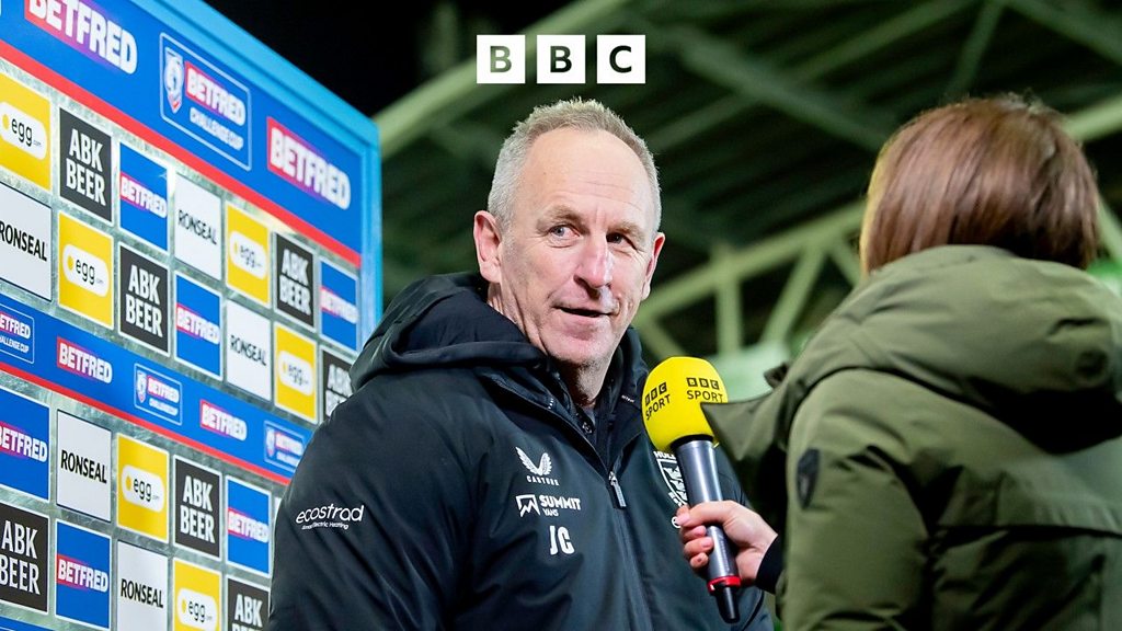 Hull FC head coach John Cartwright speaks to Richard Stead after a 24-20 win at home to Catalans Dragons. Pic: Allan McKenzie SW pix