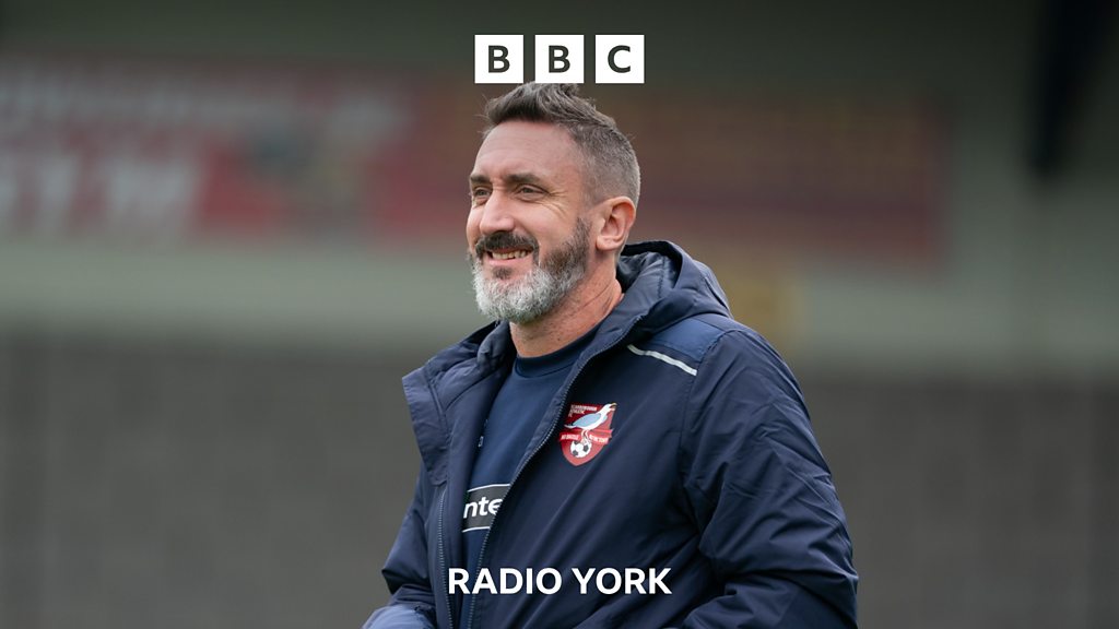 Scarborough Athletic manager Jonathan Greening speaks to James Fletcher after their 2-1 victory over Darlington