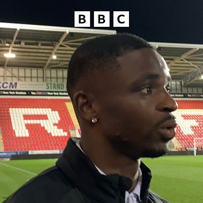 Hakeem Odoffin reacts after Luton's 2-0 away victory against Rotherham. Image: BBC