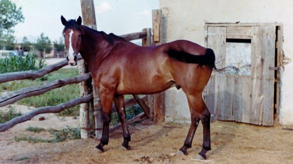 A showdown on the American/Mexican border on September 14th 1958 - in which two horses raced along either side of the border fence. Lucy Burns speaks to Ralph Romero, whose father was the owner of Relampago, the Mexican horse. Photo: Relampago, courtesy of Ralph Romero