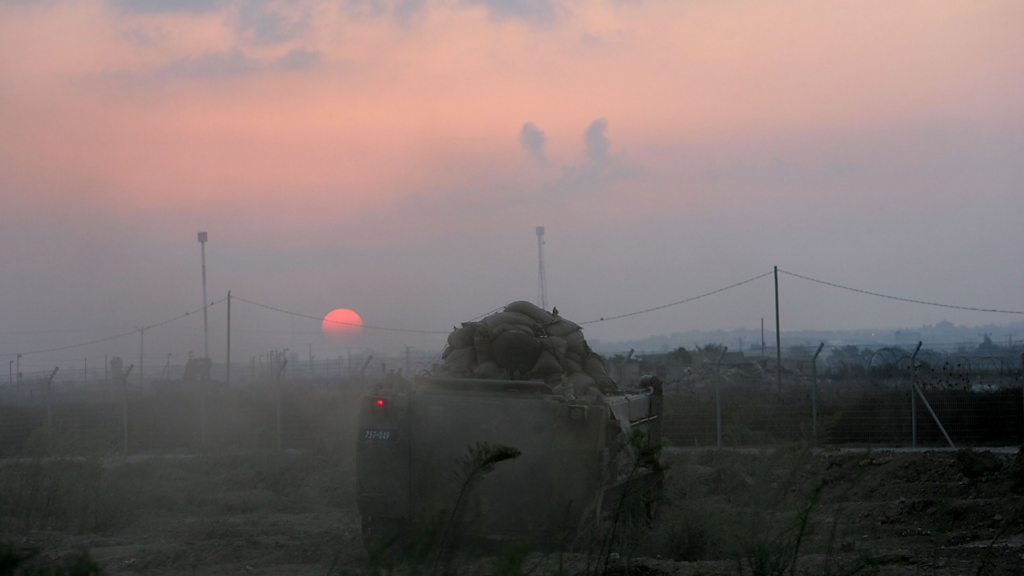 For five years Maisoon Bashir and her family lived on the front-line of the Israeli occupation of the Gaza Strip. Their house was directly opposite one of the Jewish settlements built by Israel after it captured the tiny heavily-populated territory from Egypt in the Six Day war in October 1967. Israeli troops occupied the top floors of Maisoon’s house, using it as a military look-out post, while Maisoon and her family continued living in the rooms below. They finally re-gained possession of their home when Israel withdrew from Gaza in September 2005. Maisoon tells Mike Lanchin about living with soldiers in her own home. Photo: An Israeli armored personnel carrier deploys at sunrise to protect the evacuation of the Gaza Strip Jewish settlement of Kfar Darom (David Silverman/Getty Images).