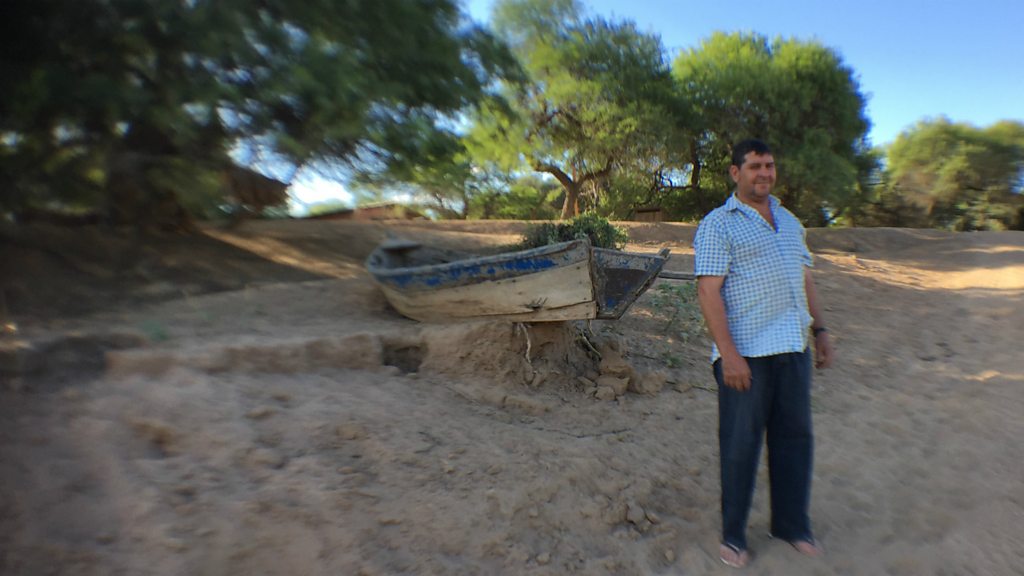 A journey up the 'suicidal' Pilcomayo river that separates Paraguay from Argentina... The Pilcomayo is the life-force of one of Latin America's most arid regions. But it is also one of the most heavily silted rivers of the world. As it courses down from the Bolivian Highlands in the months of December and January, half is water, half sand. This means it often causes flooding. Or, it changes course, failing to deliver water to those who depend on it. So in order to benefit communities, this is a river system that needs careful management, and a lot of human input to ensure the water flows. Compounding the fickleness of the Pilcomayo are 3 years of drought in the region. Gabriela Torres travels north from Asuncion up the course of the Pilcomayo during the dry season, visiting communities where the wildlife is dying and the economy under threat. How will the people - and animals - cope this year? (Photo: Feliciano Loveda standing in the dry channel of the Pilcomayo river next to his home – he hasn’t used his boat for five years. Credit: Gabriela Torres)