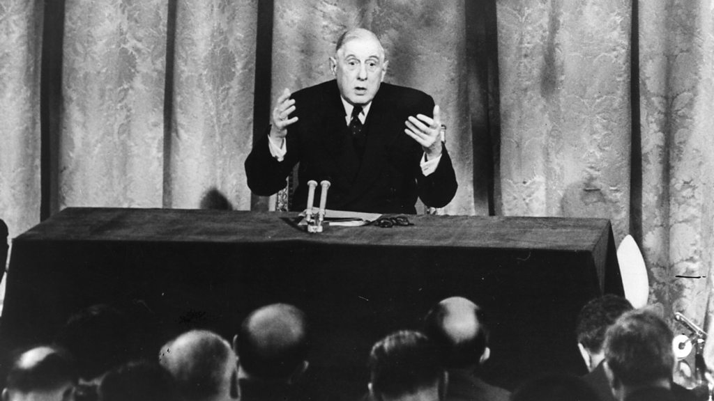 In 1963, France stopped Britain from joining the European Economic Community, now the EU. The news shocked Britain, which had been in talks to join the EEC for more than a year. Claire Bowes has been speaking to Juliet Campbell, a diplomat who was at the talks in Brussels, about the moment when Britain was shut out of the club which was making Europe prosperous. Photo: 14th January 1963 Charles de Gaulle, President of France, at a press conference during which he stated that Britain was not ready to join the Common Market except on special terms. (Credit: Central Press/Getty Images)