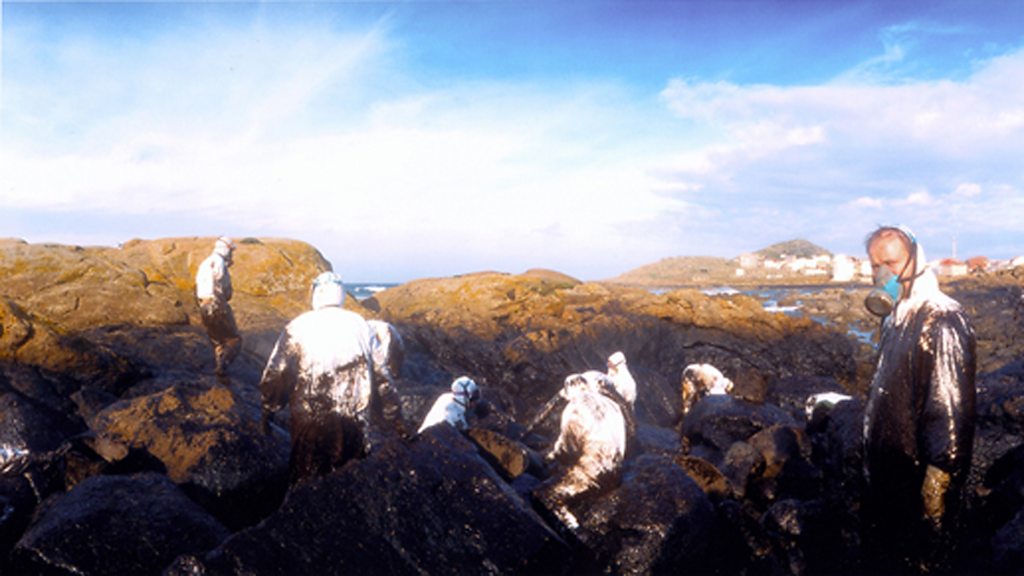 In November 2002, an oil tanker, the Prestige, sank off the coast of Galicia in north-west Spain, causing one of the worst environmental disasters in the country's history. In the following months, thousands of people from all over Spain travelled to Galicia to help clean up the spill. Simon Watts talks to Xavier Mulet, one of the volunteers. (Photo: Volunteers cleaning up after the Prestige. Credit: Xavier Mulet)