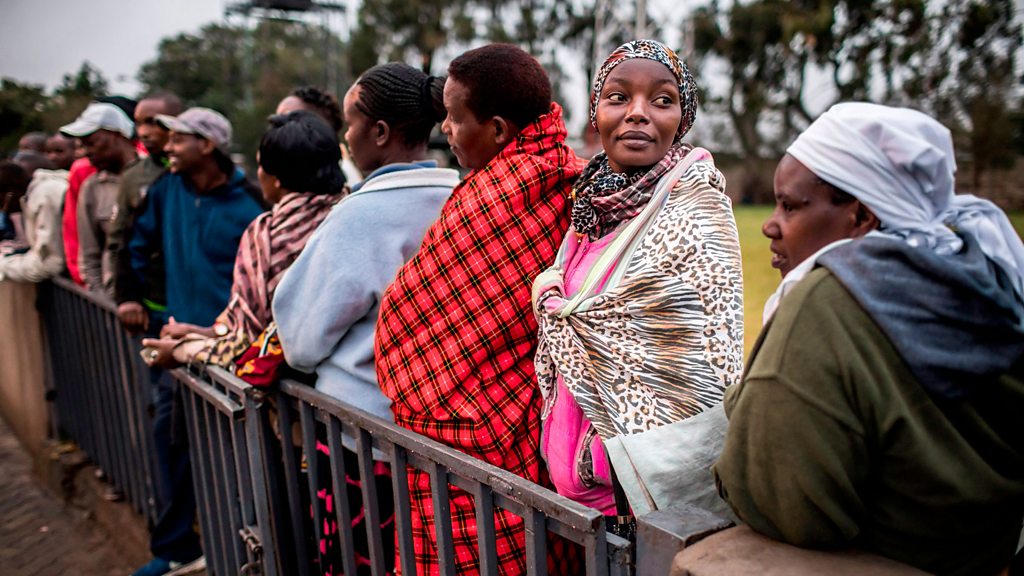 BBC World Questions comes to Nairobi to discuss the future of Kenya after two disputed elections. Kenya has the largest economy in Central and Eastern Africa. It is a proud democracy with a liberal economy, but the country is going through troubled times. After months of divisive legal and political processes it is experiencing its worst crisis for a decade. From the University of Nairobi with a large audience, Jonathan Dimbleby and a panel of political and cultural leaders discuss some of the key controversies facing the nation. The panel: Kipchumba Murkomen, Senate Majority Leader Gladys Wanga MP, Women’s Representative for Homa Bay County Nerima Wako, Executive Director of Siasa Place Joy Mdivo, Lawyer and Executive Director of East Africa Centre for Law and Justice BBC World Questions is a series of international events created in partnership with the British Council. (Photo: Kenyans gather in small queues to vote just after dawn at a polling station in Huruma, Nairobi on October 26, 2017.Photo credit: Getty Images)