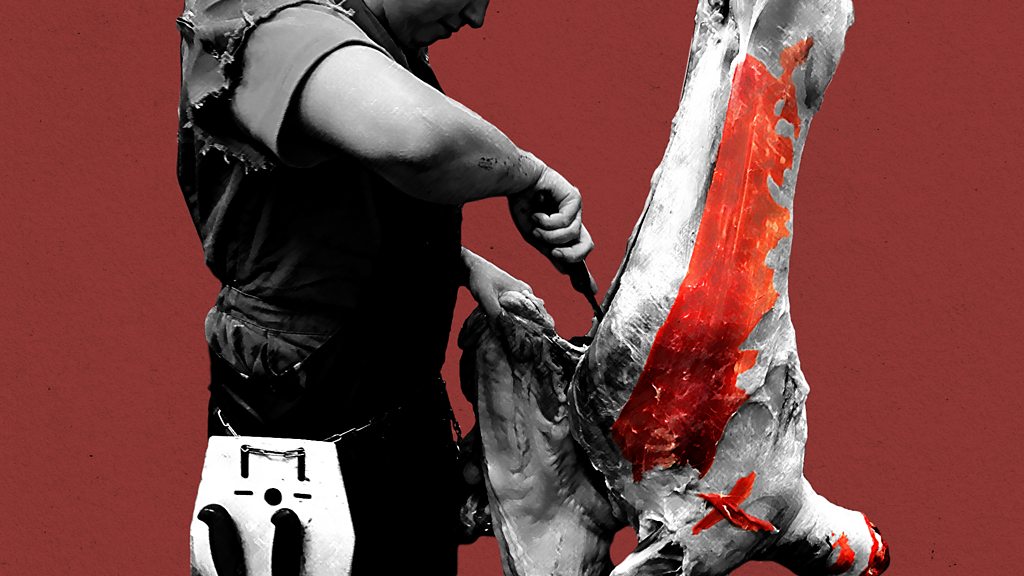 This episode includes audio of the slaughter of farm animals, which some may find upsetting. But if you happily eat meat, should you be willing to listen along as cows become beef? Would you be happy to witness it? And what might change if you did? Emily Thomas visits Tideford Abattoir, a slaughterhouse in the south of England to get an uncomfortably close up view of animals becoming food. As our food supply becomes ever more global and industrial, many of us have become distanced from the origins of what we eat. And nowhere, perhaps is this more pronounced, than with animals. Most of the meat we buy bears little resemblance to the breathing, thinking creature it once was. Across the world, slaughterhouses, or abattoirs, have long stayed in the shadows, inviting little public scrutiny. But as consumers demand a more transparent food chain, could we be heading towards a more open approach to slaughter? And how would this change our attitudes to meat? (Photo: Slaughterman with cow carcass. Credit: BBC)