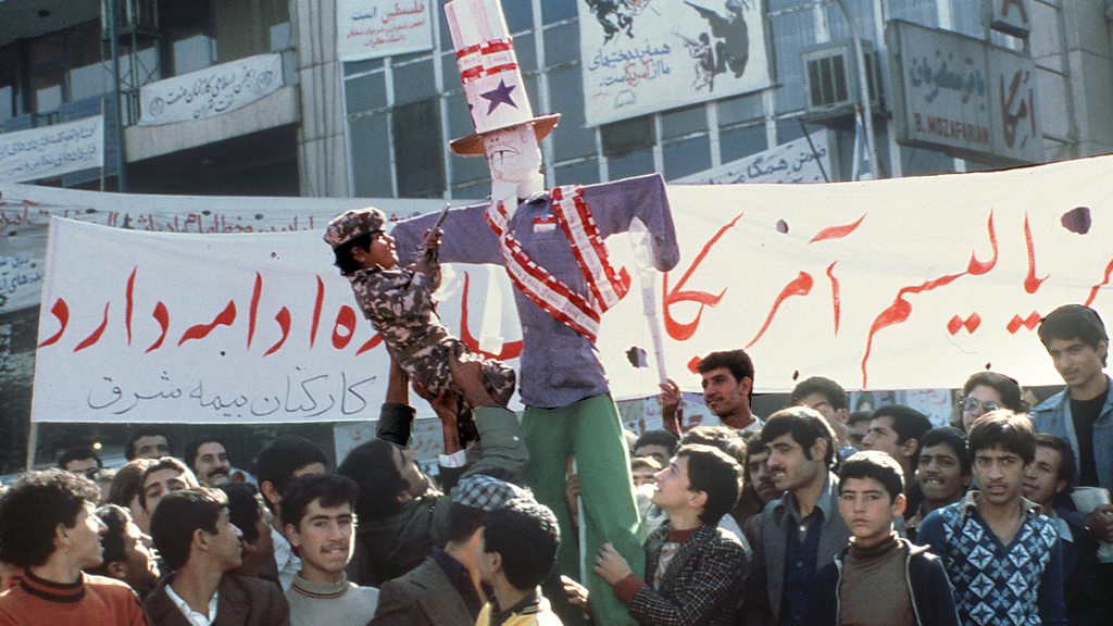 In 1979 young revolutionaries stormed the US Embassy in Tehran. 52 Americans were taken captive and held hostage for 444 days. Barry Rosen was one of the hostages. In 2009 he told his story to Alex Last. This programme is a rebroadcast. Photo: Boy in camouflage points a toy pistol at an effigy of US President Carter during a demonstration outside the US Embassy, 18 November 1979. (Credit:STAFF/AFP/Getty Images)