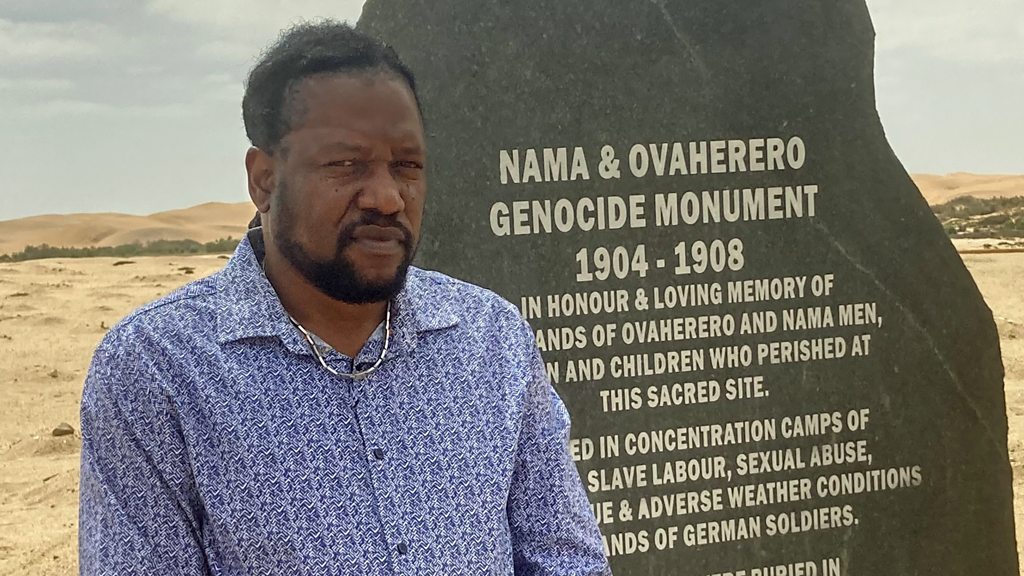 More than a century after its brutal colonisation of Namibia, including what it now accepts was the genocide of the Herero and Nama peoples, Germany is negotiating with the country’s government to heal the wounds of the past. The eventual deal may set a precedent for what other nations expect from former colonisers. But how do you make up for the destruction of entire societies? Germany has agreed to apologise - but Namibia also wants some form of material compensation. What should that be, and who should benefit? Namibians are now divided about how the talks are being conducted - and some in the country’s German-speaking minority, descendants of the original colonists, question the very idea of compensation. Tim Whewell travels to Namibia to ask how far full reconciliation - with Germany, and within the country - is possible. Producer and presenter: Tim Whewell Editor: Bridget Harney (Image: Laidlaw Peringanda at the Swakopmund Genocide Memorial. Credit: Tim Whewell/BBC)