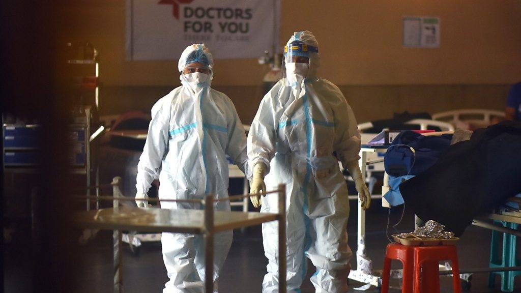 Dr Solelwa Sifumba in Johannesburg, South Africa, recently left the profession after experiencing such chronic anxiety that it even led to her considering taking her own life. She is joined by two fellow doctors in the UK, as they discuss burnout and the mental health challenges of working in constant crisis mode since the pandemic began. They tell host Nuala McGovern about the difficulty in their profession to say they are not ok. We also talk to two therapists in the United States and UK. They offer their professional view of the situation and discuss potential solutions; and they explain how the challenges for healthcare workers, and doctors, in particular, began long before the arrival of the pandemic. (Photo: Doctors wearing Personal Protective Equipment (PPE) walk after examining patients inside a Covid-19 care centre and isolation ward facility near a Hospital in New Delhi, India, 10 May 2021 Credit: Idrees Mohammed/EPA)