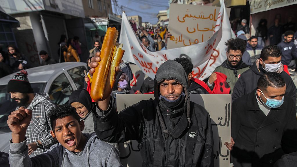 Freedom is important - but what is the use of freedom if you can’t put food on the table? Ella al-Shamahi and Abubakr al-Shamahi look at the importance of the economy in starting the protest movement itself, and how the citizens of these regions view their economic standing a decade on. They speak with young Tunisians who are bearing the brunt of a devastated economy, and investigate how power is still tied up within economic opportunities under the rule of President Al Sisi. And they hear from one of the few monarchies in the region to experience protests - Jordan. (Photo: A protester raises a loaf of bread in protest against police brutality, marginalisation and the economic, social crisis in Tunisia. Credit: Chedly Ben Ibrahim/NurPhoto/Getty Images