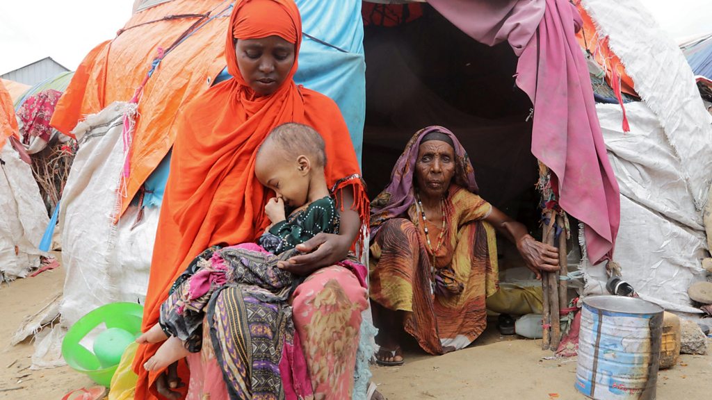 Somalia is in a state of drought following four failed rainy seasons, and a fifth predicted, with aid agencies declaring the country is in a state of famine. Despite this, the government has yet to declare a famine, insisting that certain thresholds have yet to be met. Instead, Somalia’s government believes that they would be more than able to deal with the current crisis, as well as prevent future episodes, had they been properly compensated by industrious nations for the damage caused by climate change. All this whilst the country continues to fight a near fifteen-year war with the Islamic terrorist group al-Shabab, a militant faction who wish to instil strict sharia law and impose heavy taxes on those who fall under their control. Only six months ago the hard-line Muslim faction were knocking on the door of the capital, Mogadishu. Since then, the different clans and Somalia's military, who all have their own demands and grievances, have put aside their differences and banded together to fight back, driving the terrorist group back. With support for the government currently high, some are fearful that announcing a famine could cause that support to drop away. How long the government can hold for, however, is up for debate as we ask is it too late to avoid a famine in Somalia? Presenter: Charmaine Cozier Producer: Ravi Naik & Christopher Blake Editor: Tara McDermott (Image: Somali woman affected by the worsening drought due to failed rain seasons, holds her child as her grandmother looks on: Feisal Omar/Reuters)