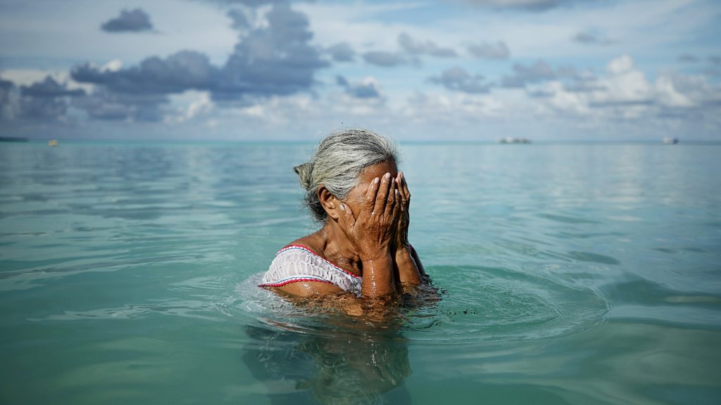 Small island nations are facing an existential threat. It’s predicted that by 2100, Tuvalu, Kiribati, the Maldives and many others will be underwater, because of rising sea levels and increasingly extreme weather events. At the recent COP27 conference in Egypt. The most polluting industrialised countries agreed in principle to set up a “loss and damage” fund, effectively recognising that low-lying islands are bearing the brunt of climate change. But is their loss inevitable? Could traditional sea wall defences hold back the waters, or are there more effective solutions? Will entire communities need to be moved to higher ground, or even entire nations transplanted to safer locations? This week on the Inquiry, we’re asking: will rising sea levels wipe countries off the map? Presented by Charmaine Cozier Produced by Ravi Naik Researcher Anoushka Mutanda-Dougherty Editor Tara McDermott Technical producer Richard Hannaford Broadcast Coordinator Brenda Brown (a woman in a lagoon in the threatened coral atoll nation of Tuvalu. Credit: Mario Tama /Getty Images)