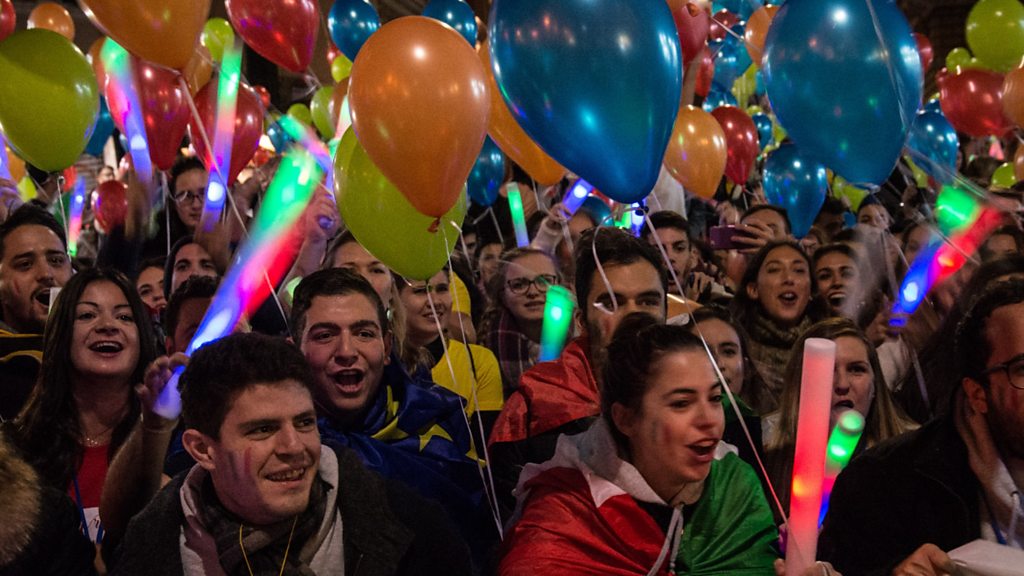 Since 1987, million of students have been able to live and study in other countries in Europe thanks to the Erasmus student exchange programme. The scheme was the result of 18 years of campaigning by Italian academic, Sofia Corradi, who saw the benefits of studying abroad herself back in the 1950s. Sofia Corradi, now known as "Mamma Erasmus", talks to Rachel Naylor, along with Lucio Picci, one of the first students to go on the programme. PHOTO: Erasmus students based in Italy at a celebration in Rome in 2017 (Getty Images)