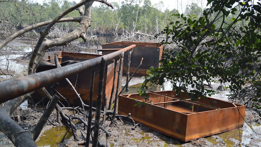 The newest player in the Niger Delta is not a multinational company, it is Nigeria’s enormous illegal oil industry. Oil thieves cut the pipelines, siphoning off oil, which they refine in the bush and sell on the black market. BBC West Africa correspondent Mayeni Jones meets an oil thief king pin, as well as an exuberant local politician, taking on this illegal business and treks deep into the forests of the Niger Delta to visit an underground refinery. And we catch up with Victoria Bera. For decades, she has been in a prolonged legal battle against Shell in courthouses around the world. Will she finally get the justice she seeks? Presenter: Mayeni Jones Producer: Josephine Casserly Editor: Bridget Harney (Photo: Illegal oil refinery in Emuoha, Niger Delta. Credit: Fyneface Dumnamene)