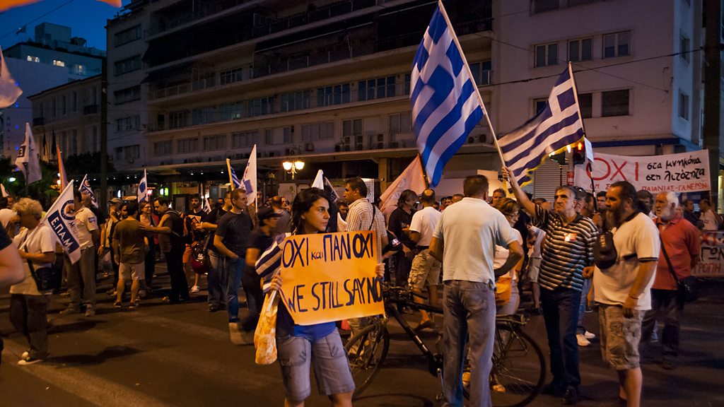 Do we still have faith in money? Trust expert and Fellow at the Said Business School at Oxford University, Rachel Botsman, talks to people from all over the world about their relationship with cash, with banks, with currencies, with credit cards and crypto. In this first episode she asks how much we should trust money. With politician and former Greek Finance Minister Yanis Varoufakis, economist and author Eshwar Prasad and investor and entrepreneur Soulaima Gourani. (Photo: Thousands of citizens gathered in front of the Greek parliament and around the Constitution Square, to protest against the vote on second bailout reforms. Credit: Dimitrios Sotiriou/Getty Images)