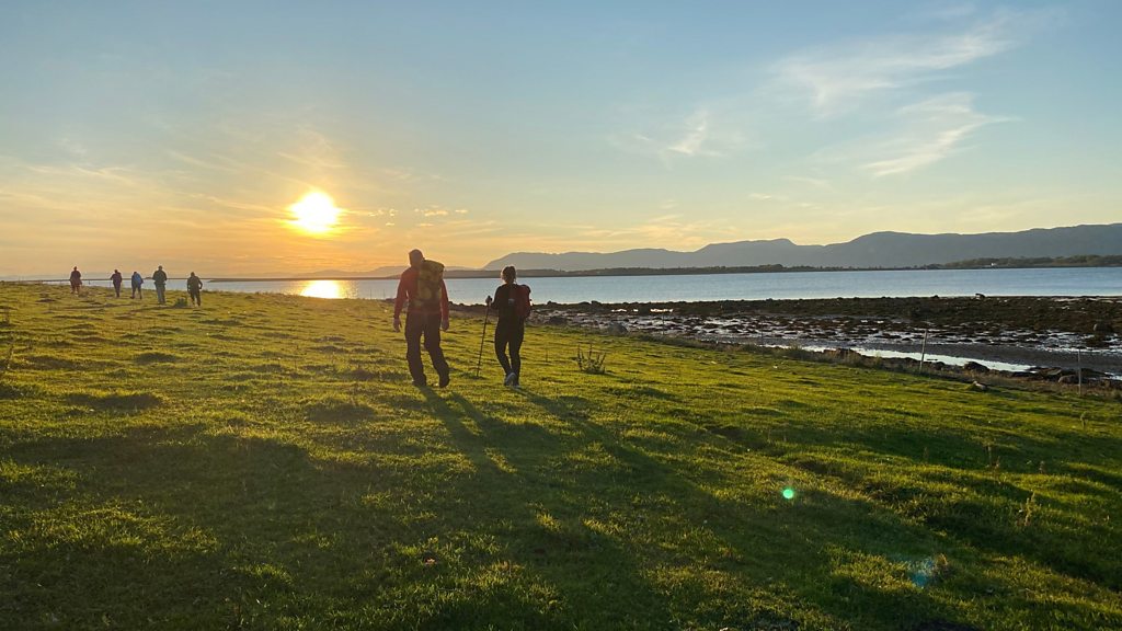 We follow in the footsteps of a Viking Saint who's legacy is bringing visitors and their cash to remote areas from Sweden and Norway. More and more people are choosing to go on modern day pilgrimages, we walk part of the world's most northern pilgrimage trail to find out how businesses on the route are benefitting. Producer / presenter: Robert Walker (Image: People walking on grassland. Credit: Getty Images)
