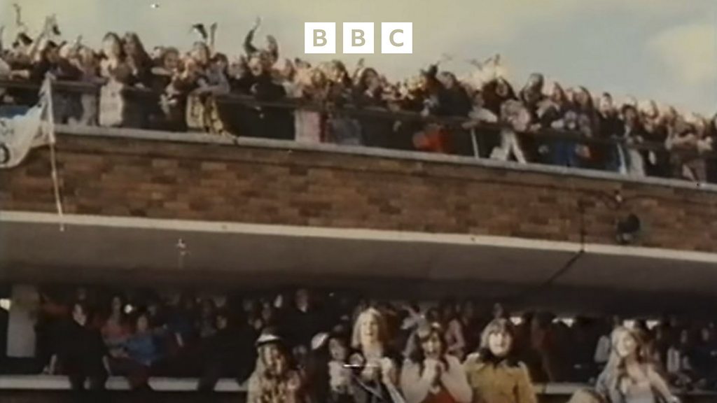 On 21 October 1973, American heartthrobs The Osmonds were met by hysterical crowds when their plane landed at London's Heathrow Airport. A surge by some of the 10,000 fans caused a viewing balcony to collapse. Eighteen people were injured. Four fans were treated in hospital. The term "Osmondmania" was used across the newspapers. Donny Osmond shares his memories of it with Josephine McDermott. (Photo: Fans wait for The Osmonds on the viewing balcony at Heathrow Airport before the collapse)