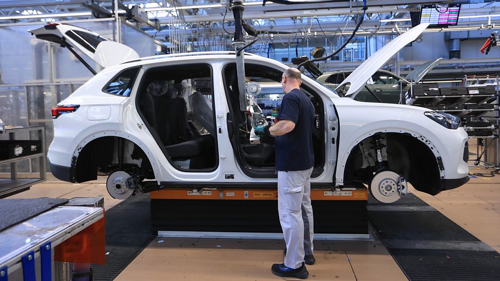 Even before there was talk of a trade war between the US and EU, Europe was on the economic backfoot. But it wasn’t always the case. In 2008, the EU was the world’s biggest economy - today, the US economy is $9.5 trillion bigger than the EUs. So what has happened? Presented and produced by Rob Young (Image: An employee fixes the seat to a Volkswagen AG Tiguan on the production line at the Volkswagen factory in Wolfsburg, Germany. The company said in March 2025 that profits had fallen amid high costs and Chinese competition. Credit: Getty Images)