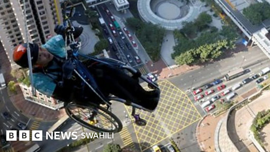 Mtazame Lai Chi-Wai kwenye tovuti ya BBC akipanda ghorofa moja mjini Hong Kong lililo na urefu wa mita 250 kwa kutumia Kamba huku akiwa kwenye gari lake la magurudumu ili kuchangisha pesa za watu walio na majiraha ya uti wa mgongo.Lai Chi-alipooza baada ya kupata ajali miaka 10 iliopita.