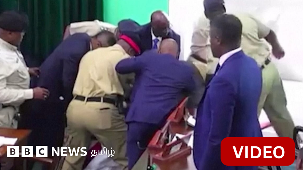 காணொளிக் குறிப்பு, பஹாமஸ்: நாடாளுமன்றத்தில் பாரம்பரிய கதாயுதத்தை தூக்கி வெளியே வீசிய எதிர்க்கட்சித் தலைவர்