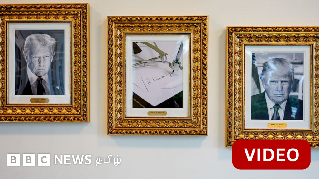 காணொளி: வெள்ளை மாளிகையில் பைடன் படத்துக்கு பதில் பேனா படத்தை வைத்த டிரம்ப்
