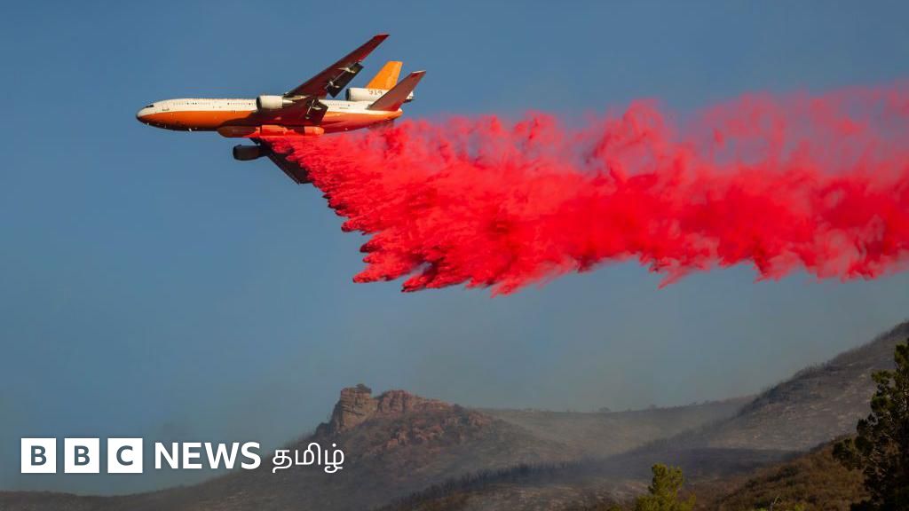 தெற்கு கலிஃபோர்னியாவில் பேரழிவை ஏற்படுத்திய காட்டுத்தீயுடன் மீட்புக் குழுக்கள் போராடுகையில், லாஸ் ஏஞ்சலிஸ் புறநகர்ப் பகுதிகளில் பிரகாசமான சிவப்பு மற்றும் இளஞ்சிவப்பு பொடிகளை தூவிய விமான டேங்கர்களின் படங்கள் வெளிவந்துள்ளன.